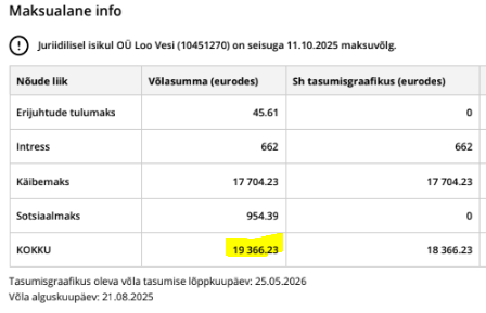 Loo Vesi OÜ-s töötab 15 inimest, kahjum on väga suur ja lisaks maksuvõlg, kus isegi maksegraafik ei aita ja sellest ei suudeta ka kinni pidada.